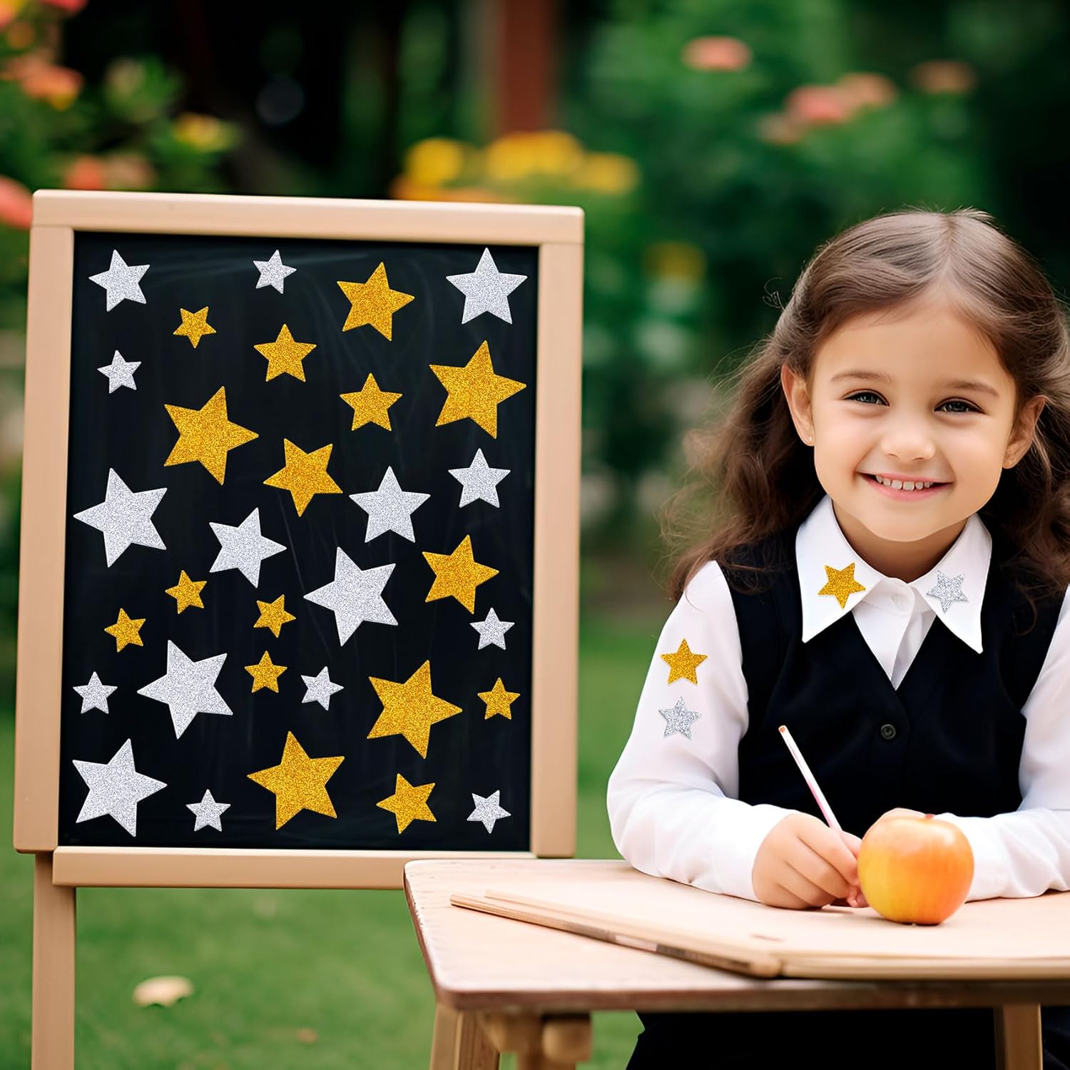 + Free Shipping100‑piece set of self‑adhesive glitter foam star stickers in gold/silver for crafts & party décor.