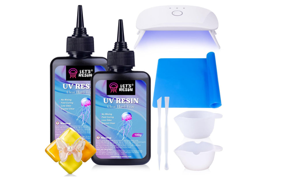 + Free ShippingStarter UV resin kit (200g) with lamp & tools – low odor, crystal clear, for jewelry & resin art.