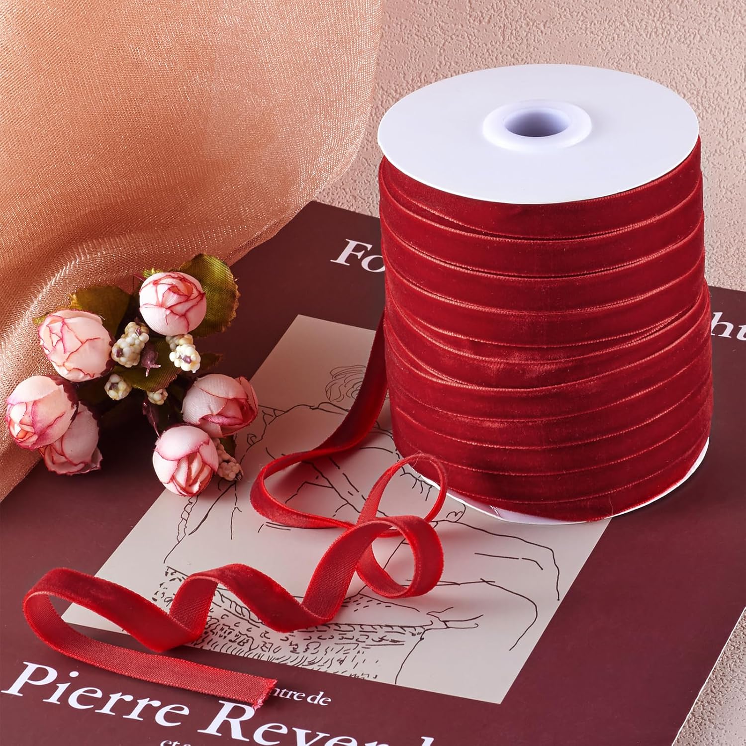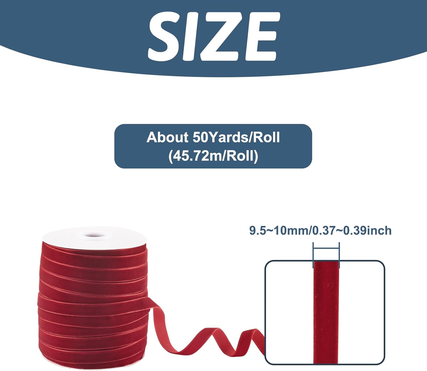 + Free Shipping50 yd velvet ribbon roll, 3/8″ wide, single face – ideal for décor & crafting.