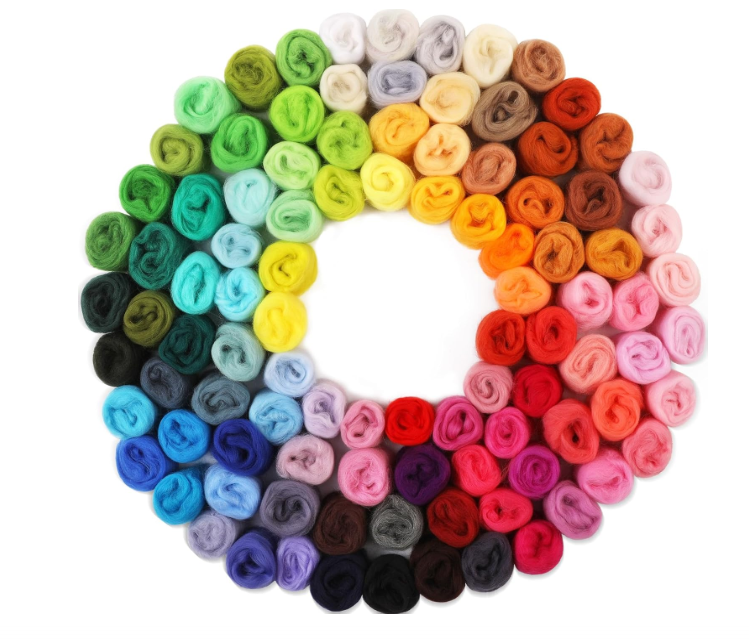+ Free ShippingWool roving set with 100 assorted colours (3 g each) for needle-felting, felting crafts, fibre art and hand-spinning.