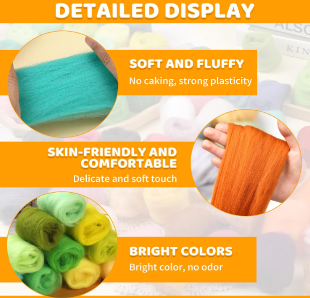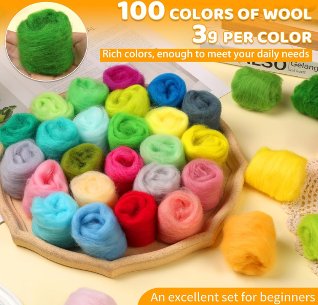 The WONVOC 100-Colour Wool Roving Set is designed for needle-felting and other fibre-arts projects. It contains 100 different soft wool roving colours (approximately 3 g each) providing a vivid palette for crafting animals, decorative pieces or textile art. Suitable for both beginners and advanced crafters seeking versatility in colour and texture.